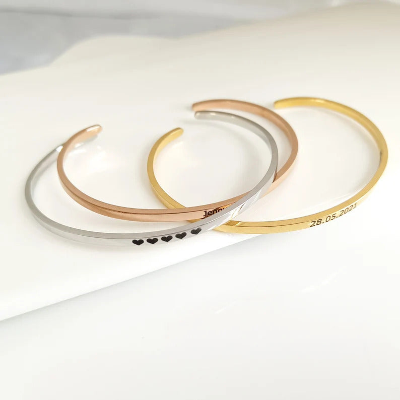 Et tidløst, elegant armbånd håndlaget i 925 sterling sølv, gravert med navn, initialer eller en personlig melding. Perfekt som en minneverdig gave til særlige øyeblikk.